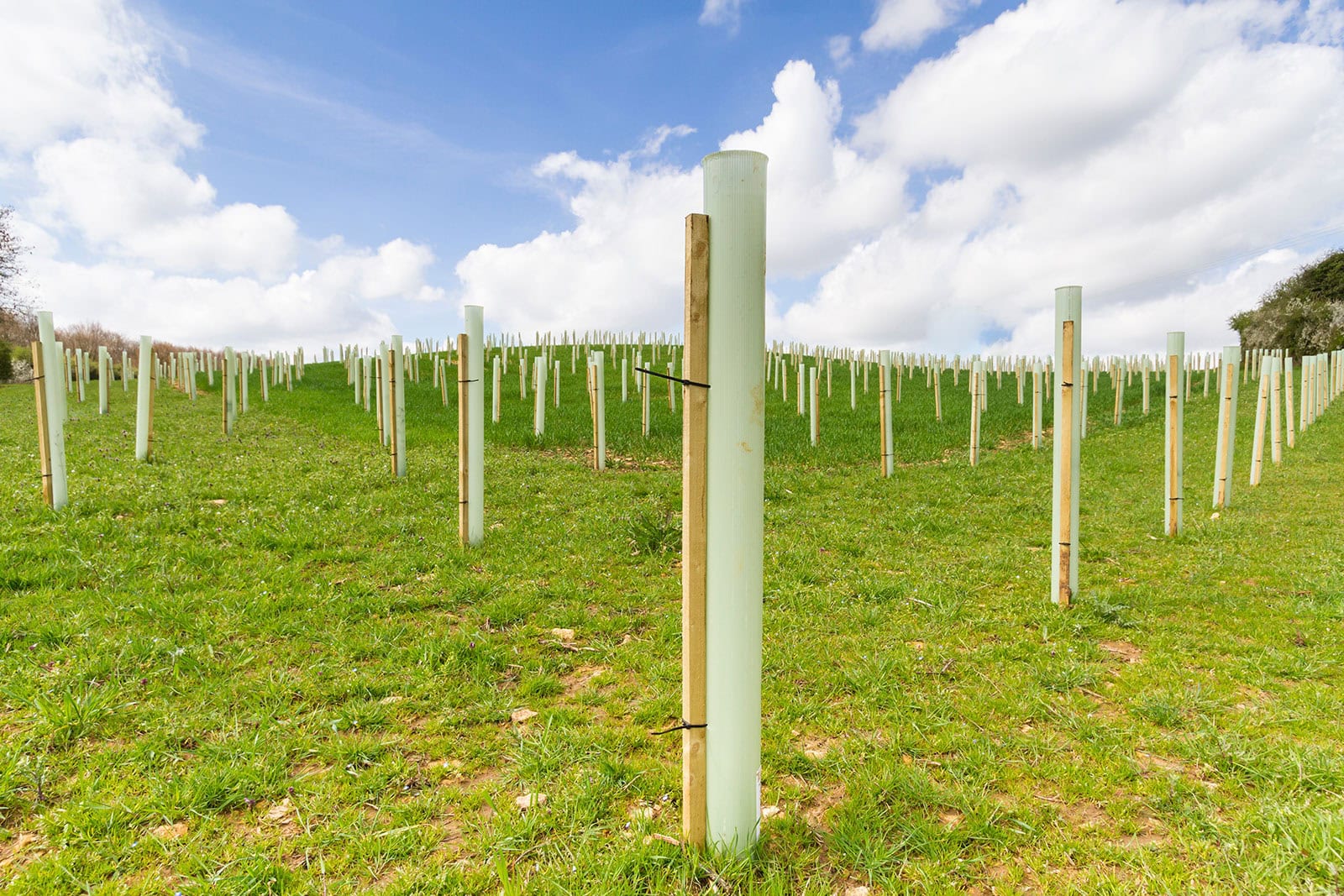 Each project begins with careful site preparation — clearing competing growth and enriching the soil if needed. Whips are planted using efficient slit or notch methods, while larger trees are pit-planted, staked, and guarded. We install protective shelters and mulch to ensure young trees establish quickly and safely in their environment.